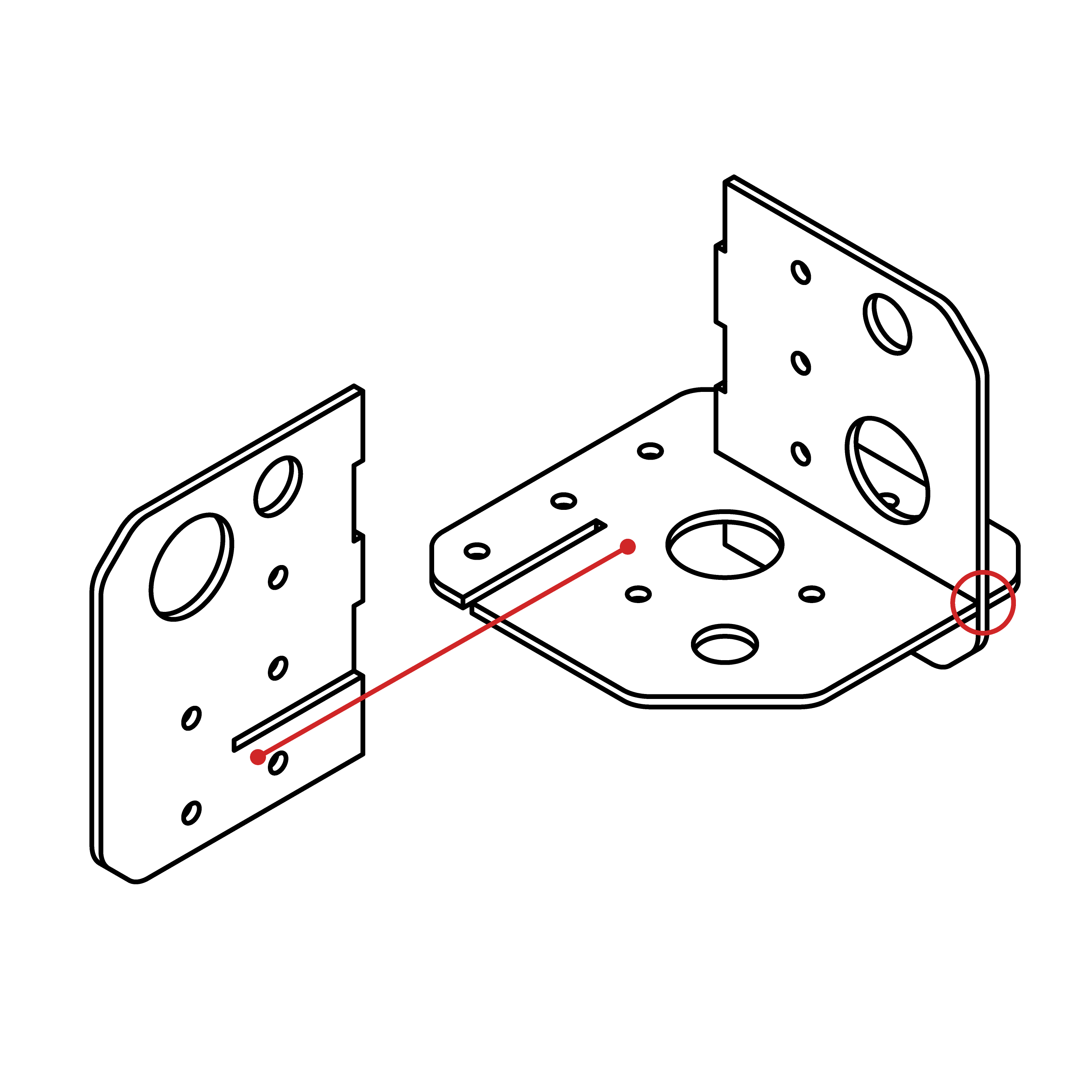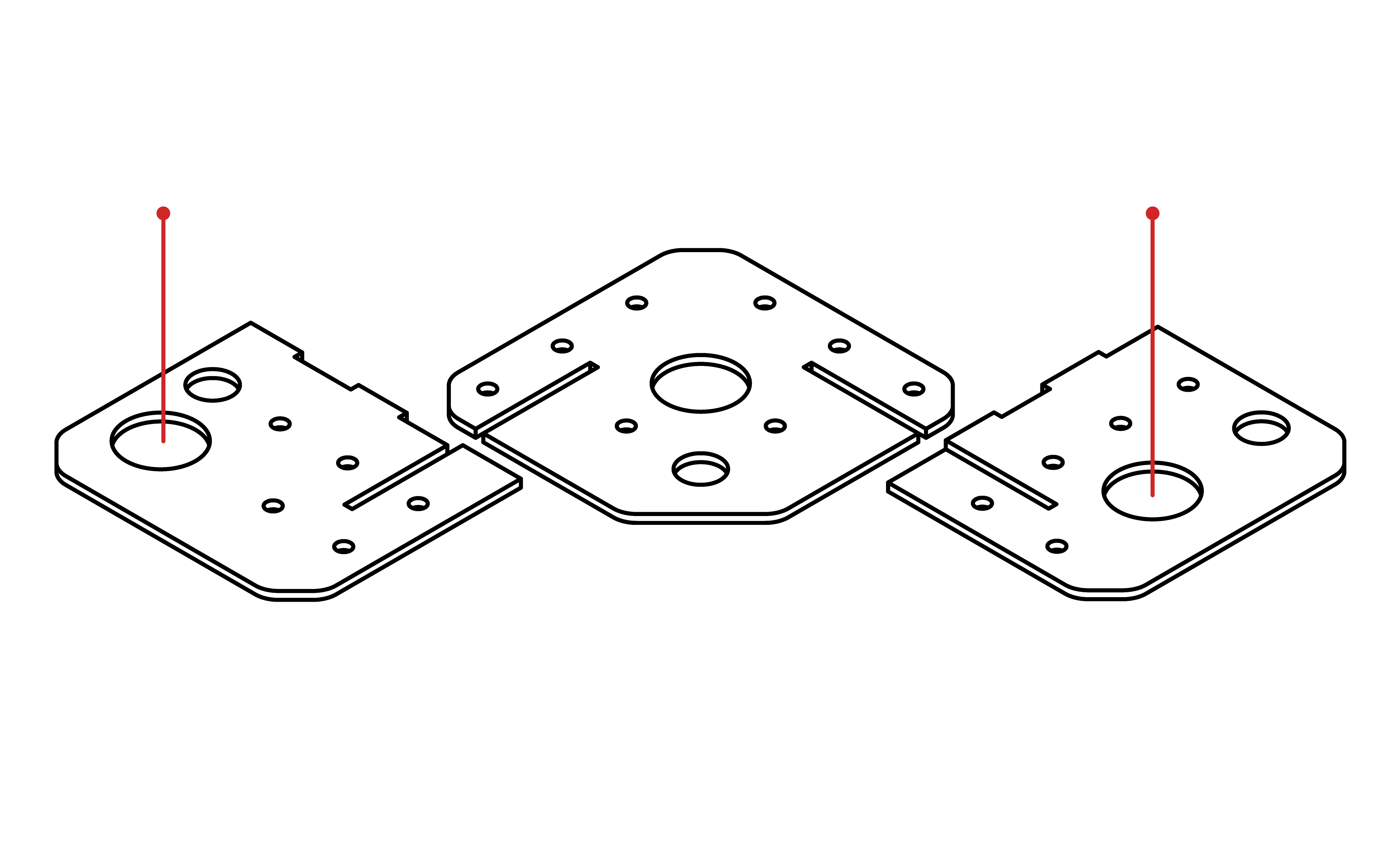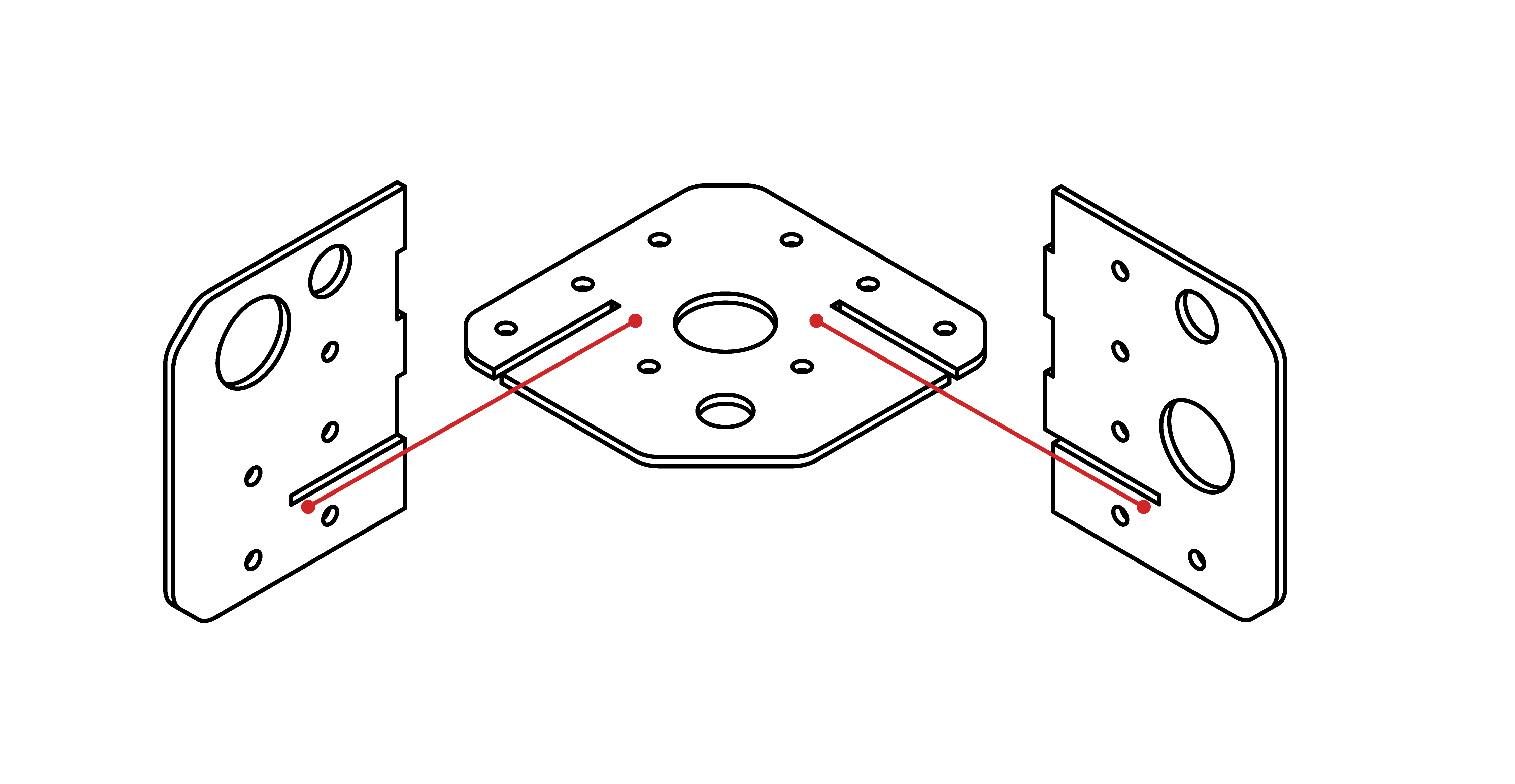 The junction is made from planar material using laser cutting or CNC milling. Follow the provided drawings and hole templates for compatibility. If needed, components can be sourced directly. Accuracy determines system performance.