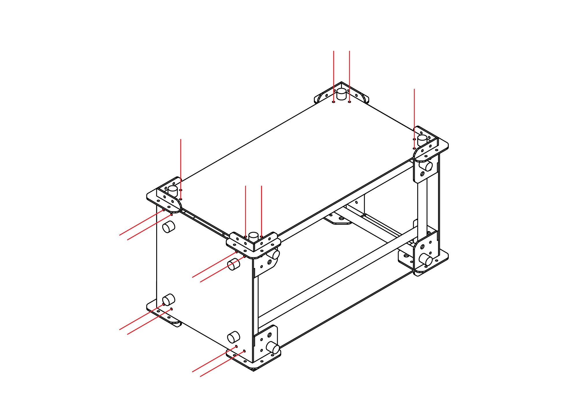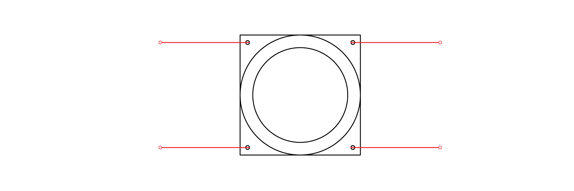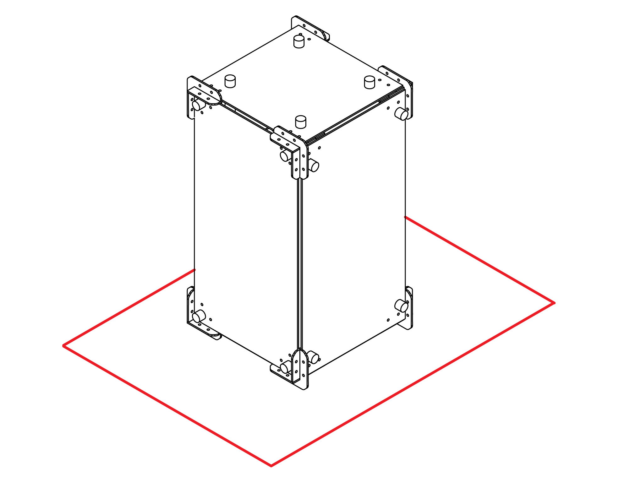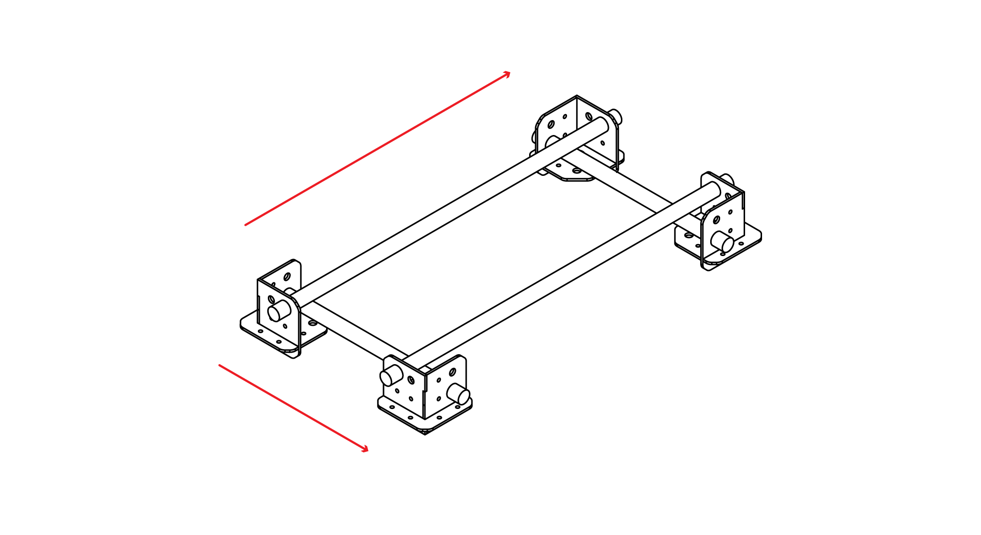 1. Arrange 4 junctions to form a square, with chamfered edges facing inward. Ensure that opposite holes